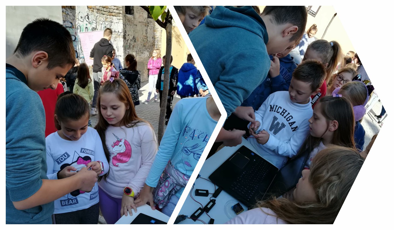 Душан Шијачић (72) показивао је ученицима како се програмира, те како помоћу mikro:bit-а можемо вежбати рачунске операције, како можемо једним mikro:bit-ом давати команде другом mikro:bit-у, одређивати стране света, програмирати игрице...