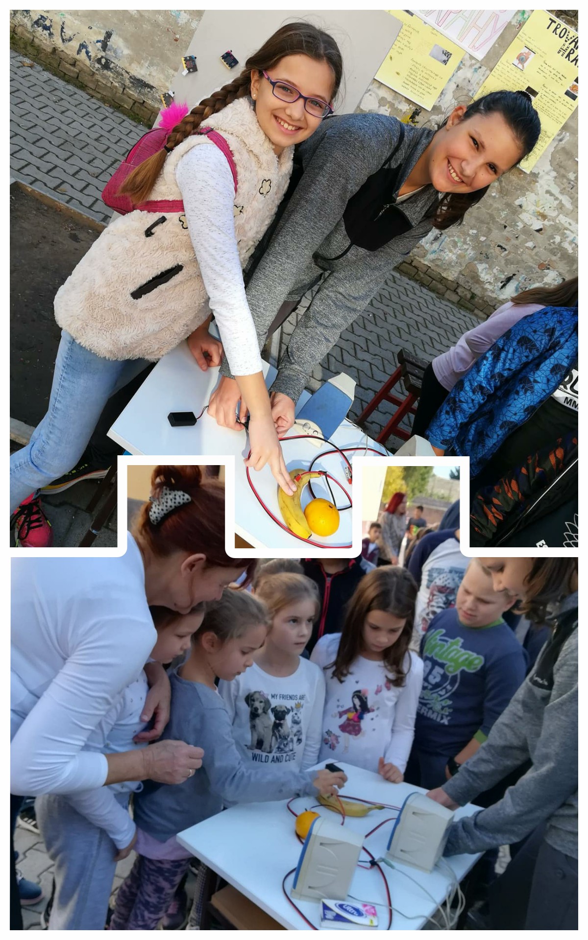 Да помоћу воћа (једне банане и једне поморанџе) и mikro:bit-а може да се ствара и мелодија, ученицима су показивале Лана Паштровић (64) и Сара Кунић (64), док су ученици на хорској секцији певали песме о воћу.