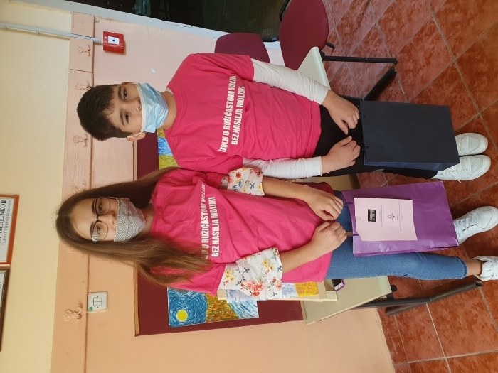Ученици од другог до седмог разреда учествовали су на ликовном конкурсу „Школу у ружичастом волим, без насиља молим!“ који је поводом обележавања Дана розих мајица, расписала ОШ „Јован Микић“ из Суботице. Сања Бјелајац, ученица 74 разреда, освојила је прву награду, а Данијел Плавшић,ученик 54, специјалну похвалу. Награђени ученици и њихова наставница ликовне културе Рената Цветков присуствовали су свечаном уручењу награда у Суботици.