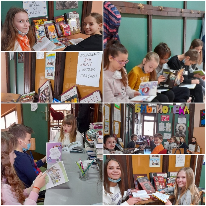 Поводом обележавања НАЦИОНАЛНОГ ДАНА КЊИГЕ, у понедељак 28. фебруара 2022. године, ученици су у библиотеци били у прилици да искажу вештину читања читајући ГЛАСНО. Ученици су радо приступили акцији „Читајмо гласно“, поводом Националног дана књига, коју је организовало Друштво библиотекара Србије. Осим гласног читања, током целог дана су се промовисале књиге и важност читања, као и то колико читање има позитиван утицај на човека.