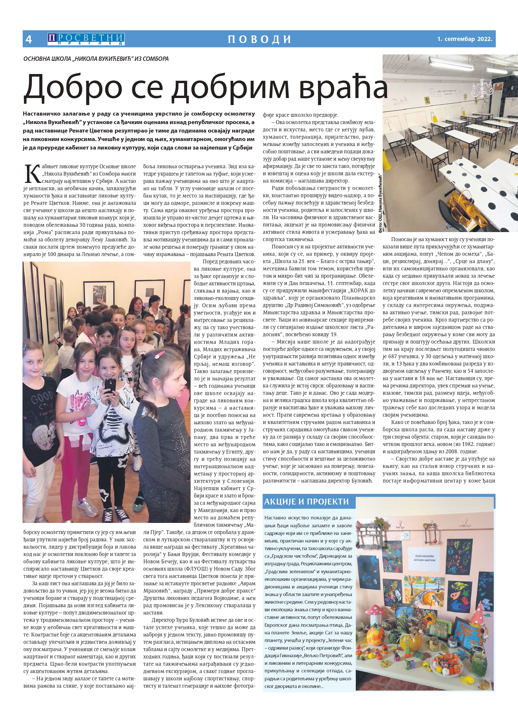 У најновијем броју „Просветног прегледа“, објављеног 1. септембра 2022. године, објављен је чланак о нашој школи. Прочитајте га!