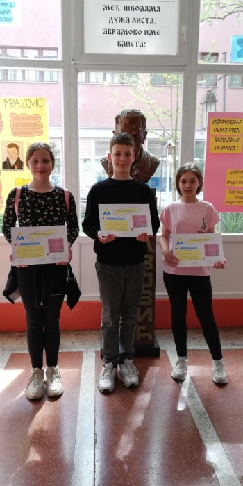 Честитамо Уми, Лени, Лазару и њиховој наставници српског језика Соњи Ђорђевић Јоцић!